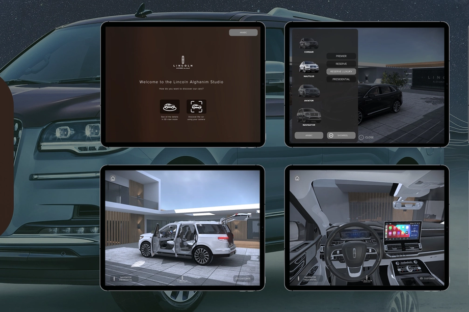 Pre nášho klienta v Kuvajte sme vytvorili multiplatformovú aplikáciu s cieľom pomôcť pri predaji značky luxusných áut Lincoln. Keďže sme digitálne vytvorili všetky modely, farby a extra verzie áut, mohli sme ich jednoducho umiestniť do virtuálneho prostredia, ktoré by sme potom mohli prezentovať na rôznych platformách. Pre autá sme vytvorili dva showroomy, záhradu vily v modernom štýle a uzavretejší priestor, kde sme mohli autá prezentovať v tmavšom prostredí. Tieto prostredia je možné v budúcnosti flexibilne meniť, aby bolo možné každé auto umiestniť do svojho jedinečného prostredia – jediným limitom je vaša predstavivosť. Potenciálni zákazníci si mohli pomocou rôznych nástrojov nakonfigurovať automobil Lincoln svojich snov.